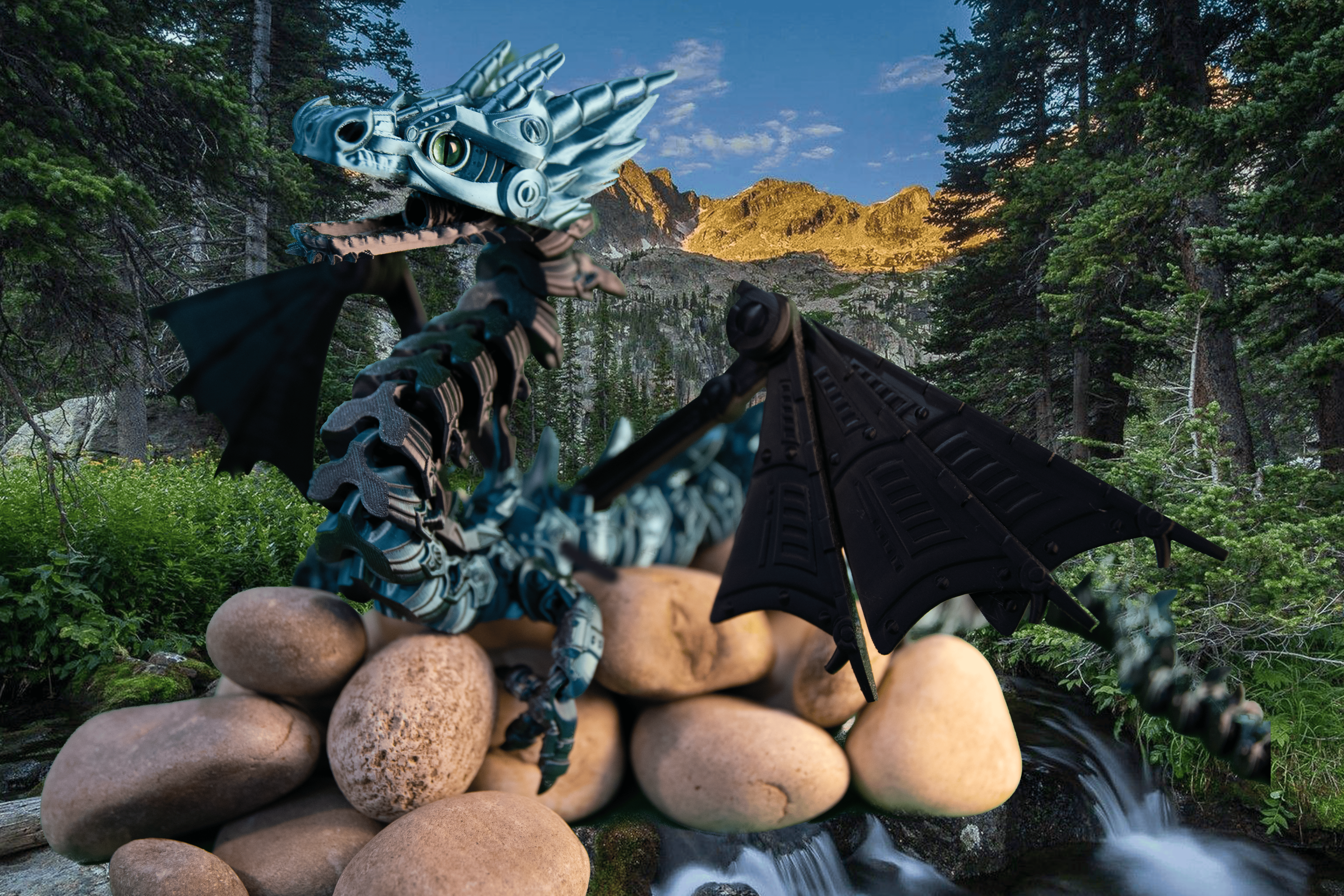 Mechanical Winged Dragon Fully Articulated! Green / Black Silk